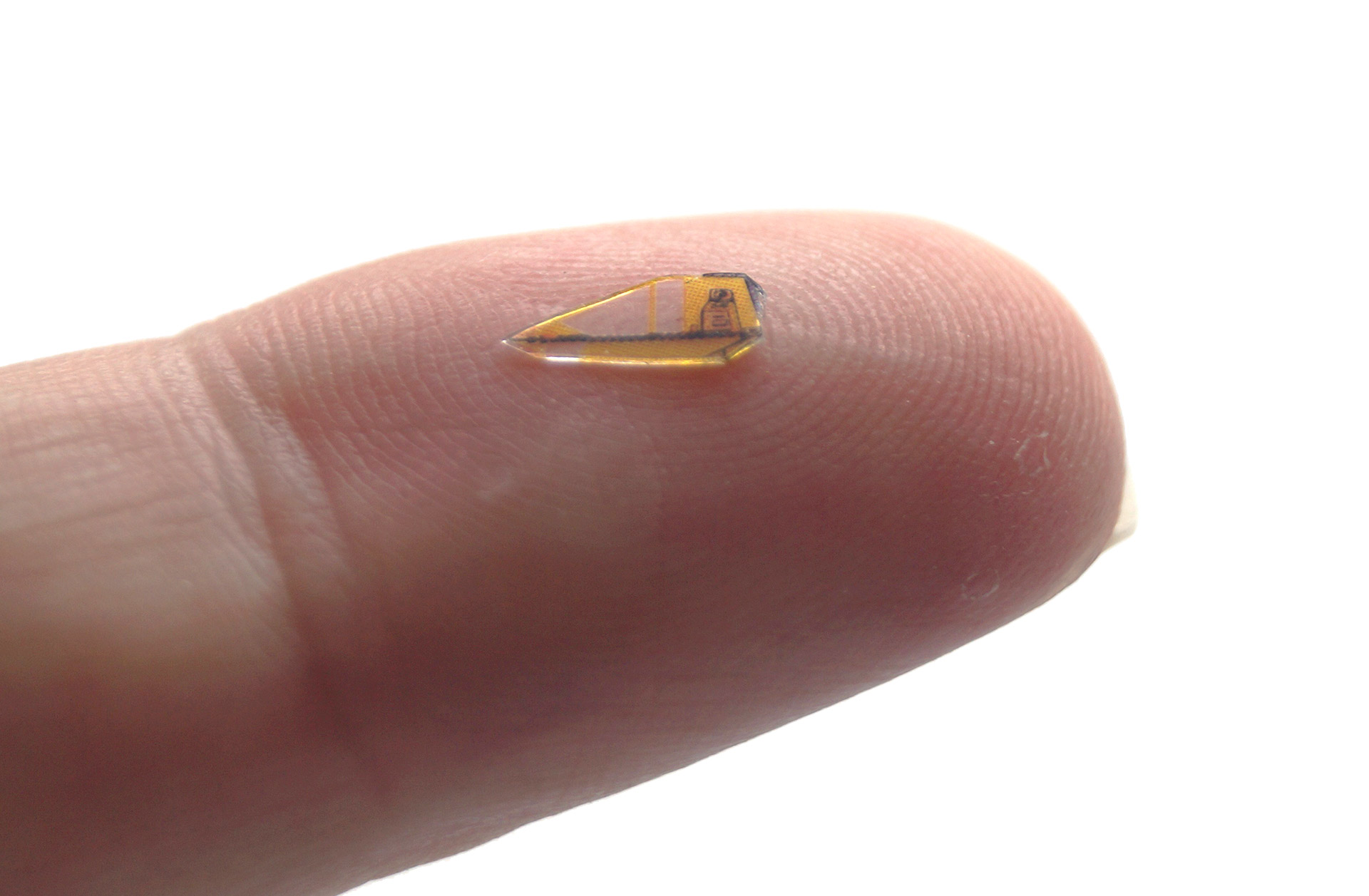 Again, the sense of scale in how small these pieces are may be lost without a visual frame of reference. To the right is a photo of one of my early experimental test prints which I cut out, resting on the tip of my forefinger.