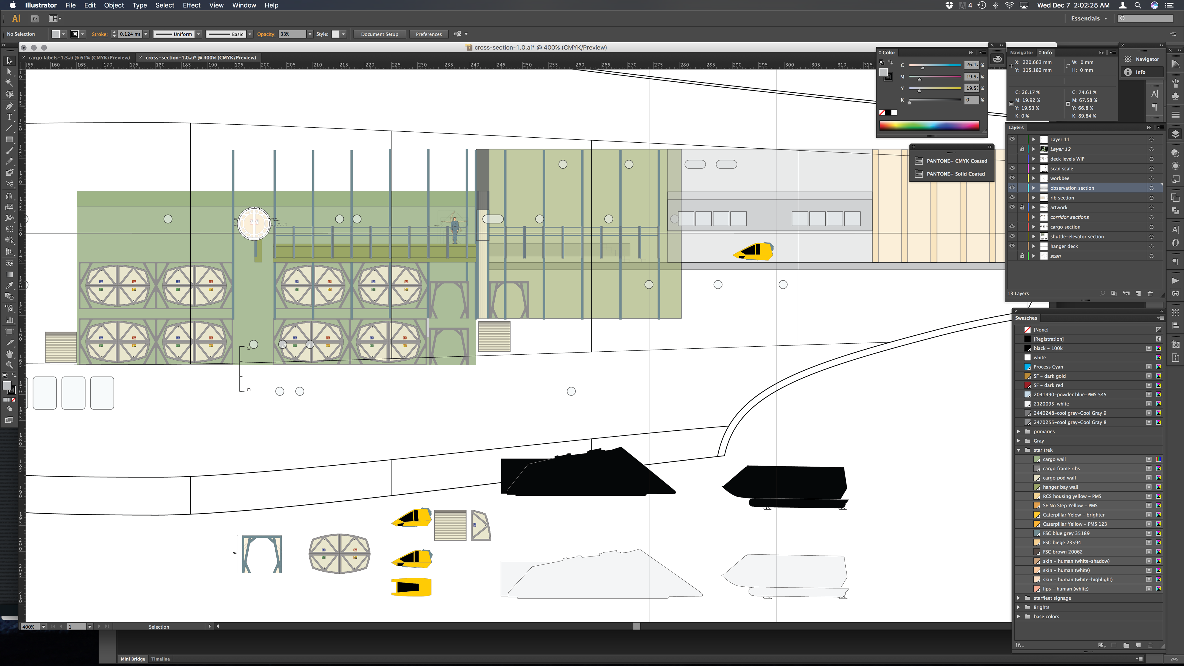 So I worked out an imagined color-coding for the cargo labels which would integrate with the different starfleet departmental or divisional colors shown in the uniform insignias, as well as the graphics used on the ship, etc.