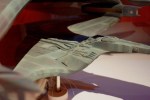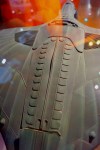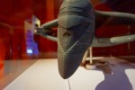 These where shot with a Sony SLT-A65V mirror digital SLR with a 3.5-5.6/18-55 SAM zoom lens with just the display case lighting, which was not a color balanced light and fairly low-level lighting. I did the best I could to white balance the color in Photoshop, using the white lettering of the signs as well as the table surface within the display case as a white reference. The model was also behind a glass case, so some reflections of exit signs and things in the rest of the display hall can show up in the shots.