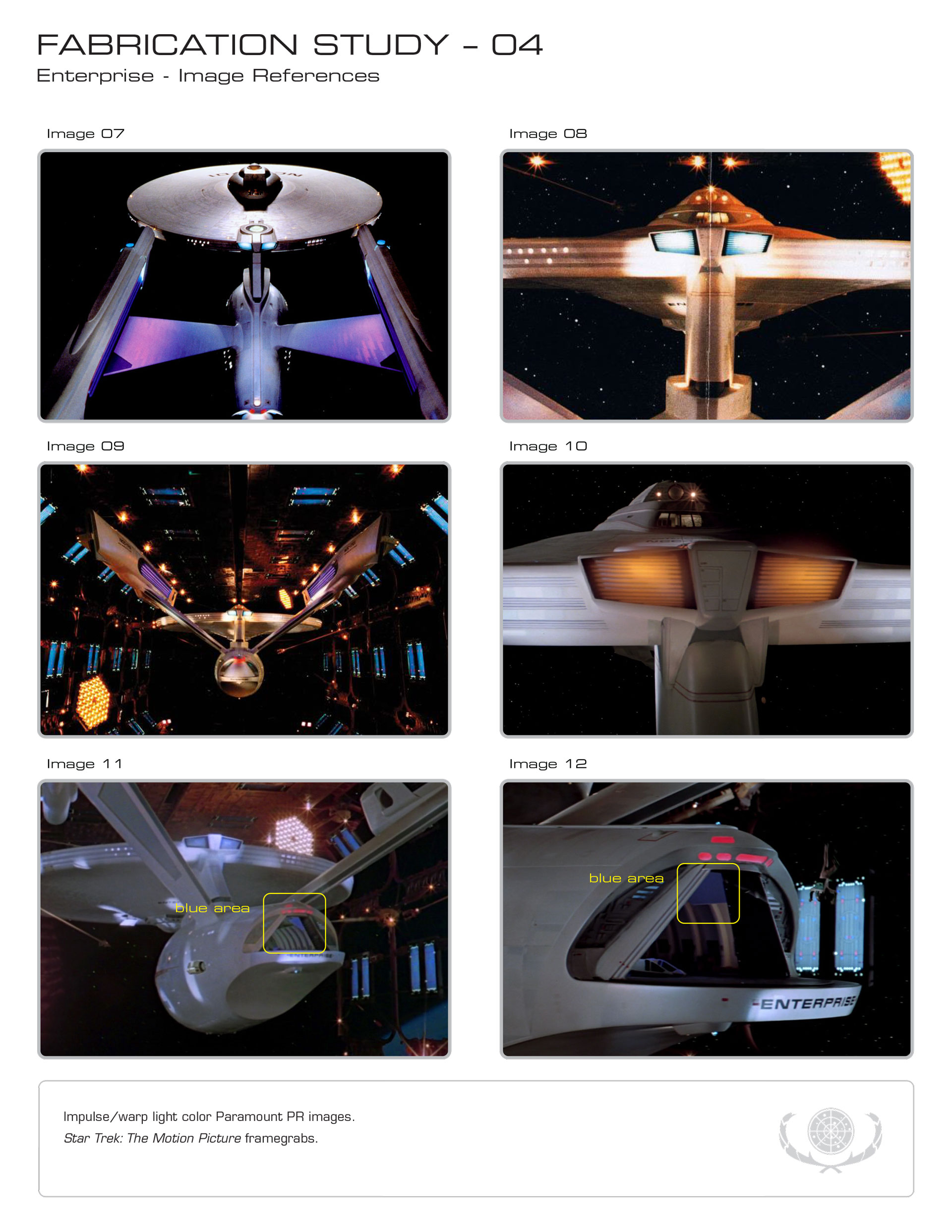 I ask because that has lead to the whole controversy in modeling circles about whether the warp grilles light up blue, or if they light up violet. It seems depending on the PR shot, or what was in the film, or the various color-correcting and white balancing used in all of those different images, it can give you radically different results.
