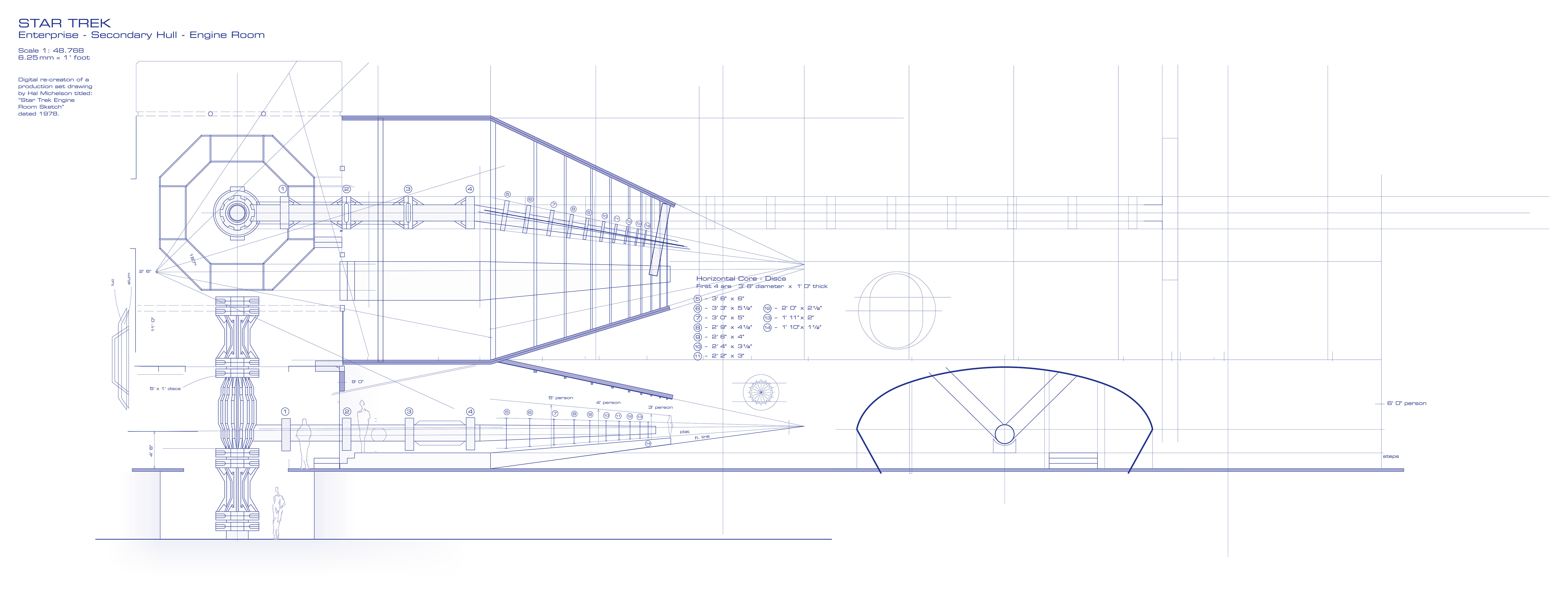 I will eventually circle back and do a much more through expansion of the engineering section of the Enterprise, when I get to that part of doing the full interior drawing/schematic workup of the ship. These will be done as full orthographic and 3D drawings of “in universe” hyper-detailed plans. But that is a long ways off.