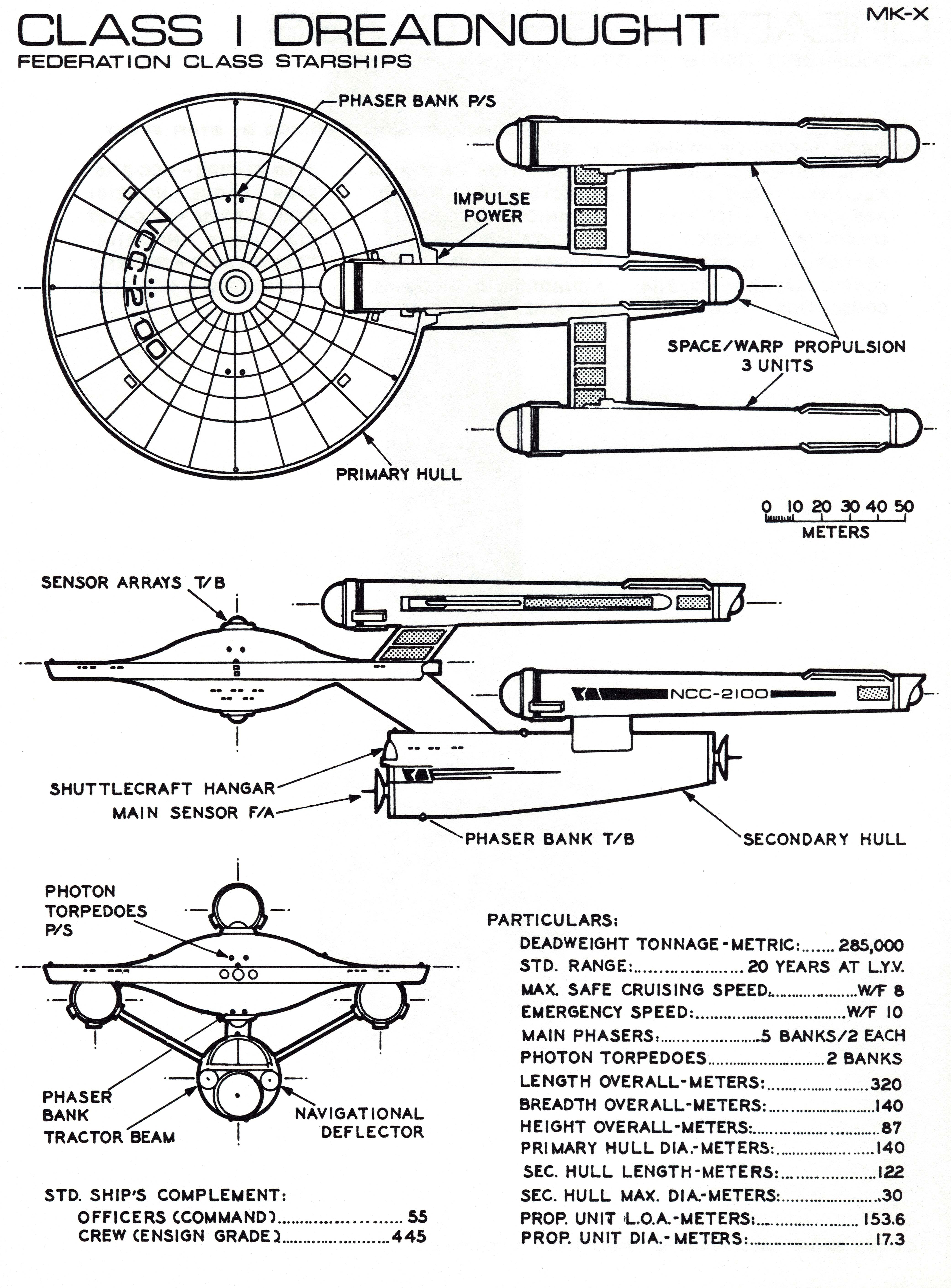 A fellow Trek-geek who I have been doing some collaborative work with was looking for this drawing. He is working on a somewhat related set of drawings for a Dreadnought-class starship, which is a ST:TMP era/style version of a ship first conceived by Franz Joseph for the wildly popular (among Trek geeks) Star Fleet Technical Manual back in 1975. I have been helping out a little here and there on his project. Mainly by working out the Enterprise-refit designs. He has also been invaluable in helping spot ST:TMP related production drawings and such when they appear online either for sale or on a fan site.